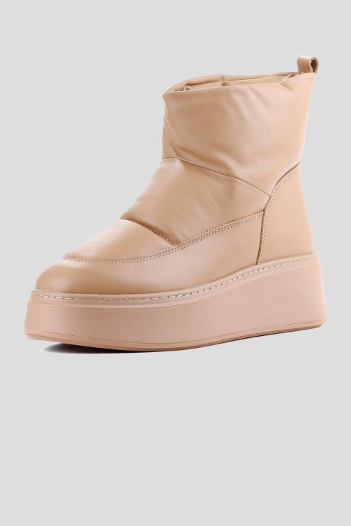 Женские бежевые сапоги из натуральной кожи от Le Berdes (Ле Бердес). Закругленный носок, петли для подтягивания, утеплены мехом, рельефная подошва. Измерения: высота каблука: 5 см, высота платформы: 4 см