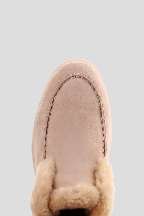 Детали: Женские пудровые лоферы из замша от Le Berdes (Ле Бердес). Миндалевидный носок, без застежки, рельефная подошва, утепленные мехом. Измерения: длина стелька: 23.5 см(36)