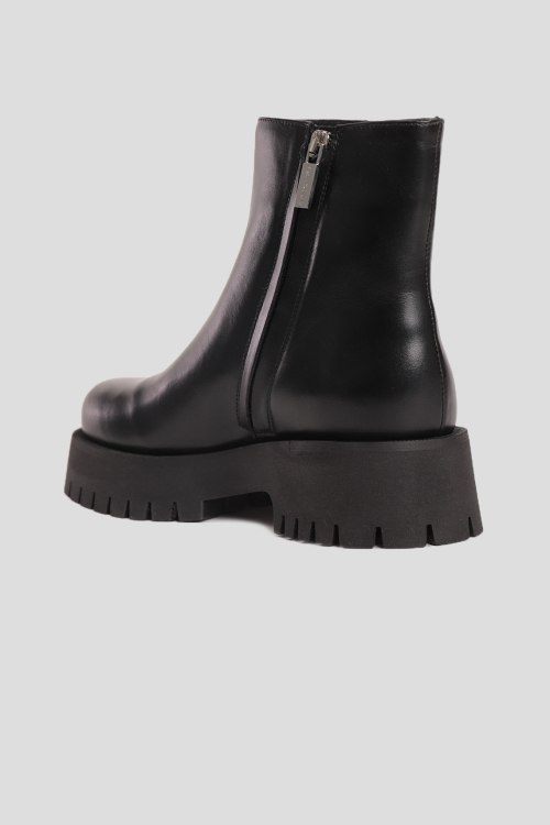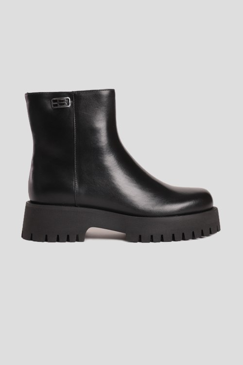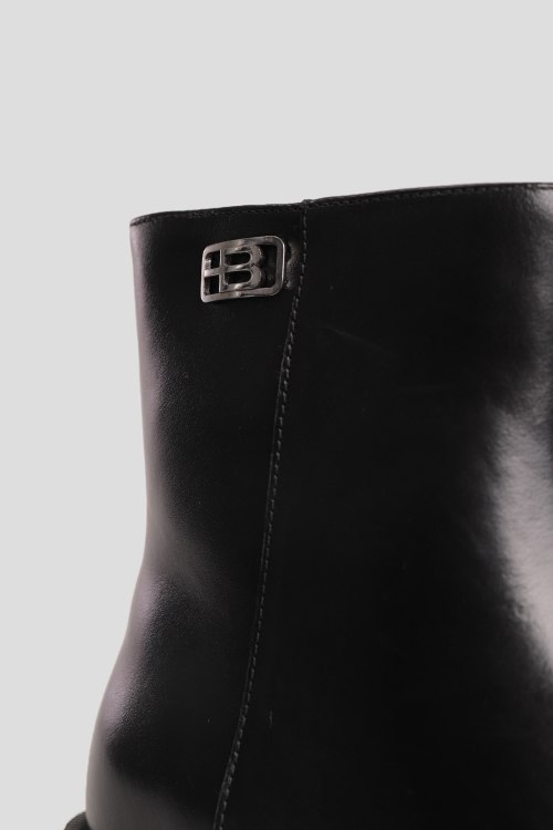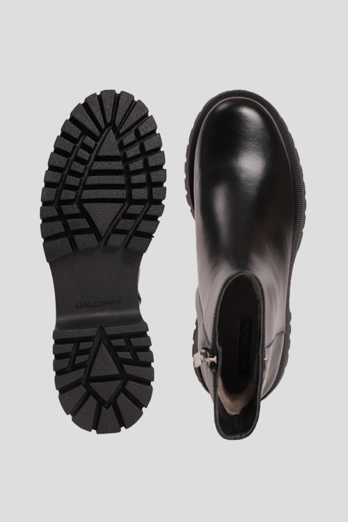 Детали: Женские черные кожаные ботинки на меху от Baldinini (Балдинини). Модель из гладкой кожи, серебристый значок с логотипом, застежка-молния сбоку, закругленный носок. Высота каблука: 5 см, высота подошвы: 3.5 см