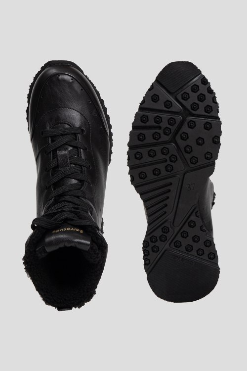 Детали: Женские черные кожаные ботинки на меху от Barracuda (Барракуда). Модель из зернистой кожи, логотип на язычке, классическая шнуровка, закругленный носок, внутри на меху