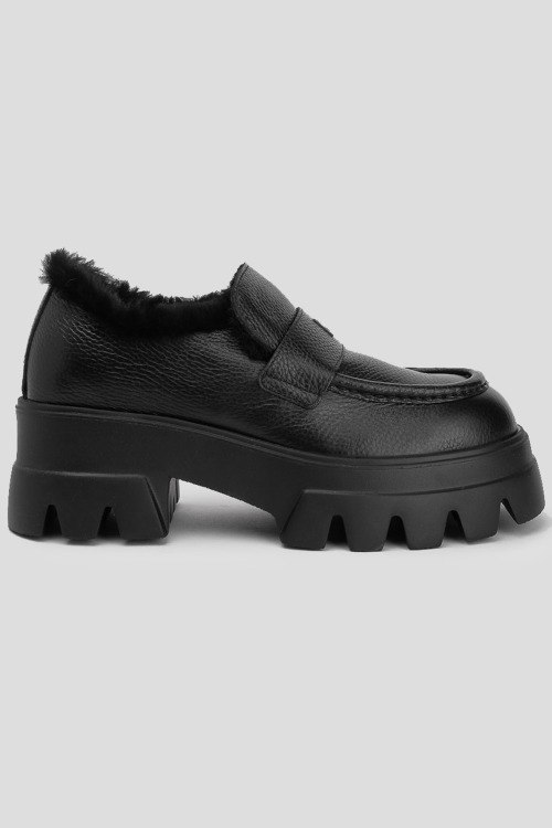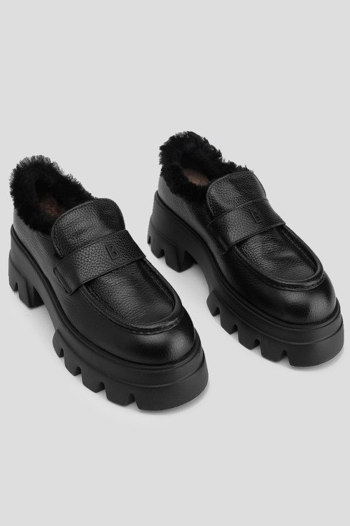 Детали: Женские черные кожаные лоферы на меху Sapporo от Bogner (Богнер). Модель из зернистой кожи, значок логотипа спереди, закругленный носок, массивная подошва, внутри на меху. Высота каблука: 6 см