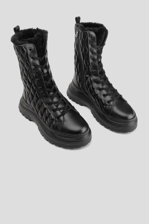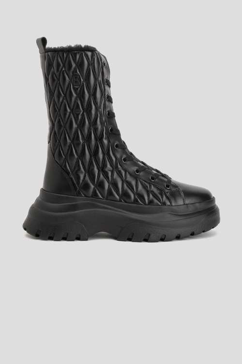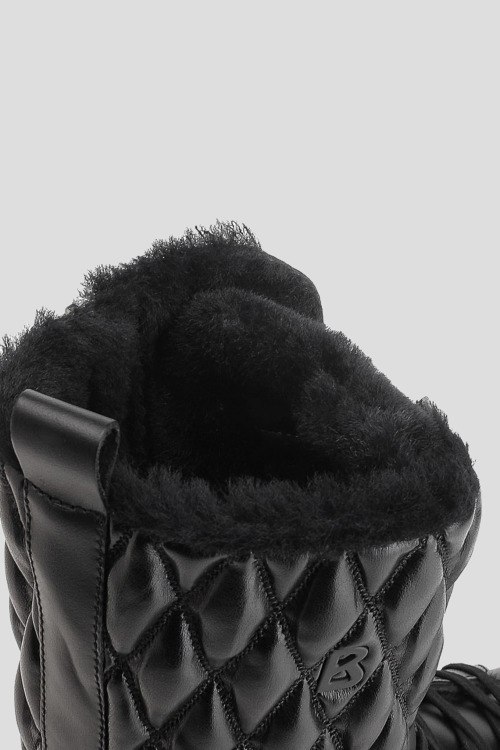 Детали: Женские черные кожаные ботинки на меху Banff от Bogner (Богнер). Модель из гладкой кожи, стеганый дизайн, логотип сбоку, петля для подтягивания сзади, классическая шнуровка, закругленный носок, внутри на меху