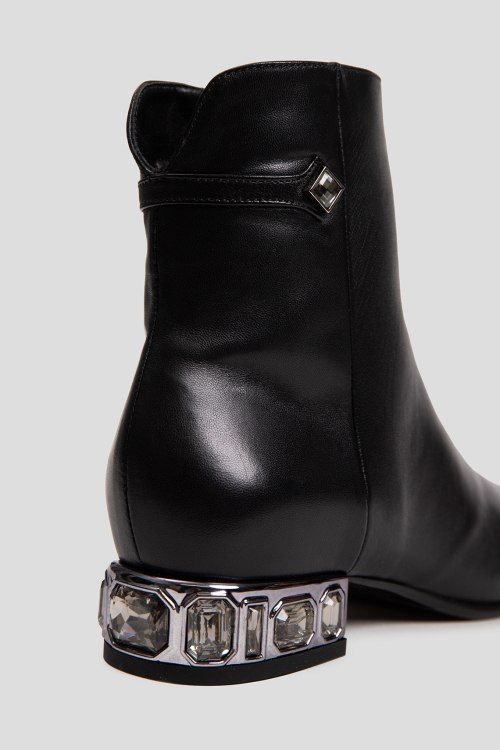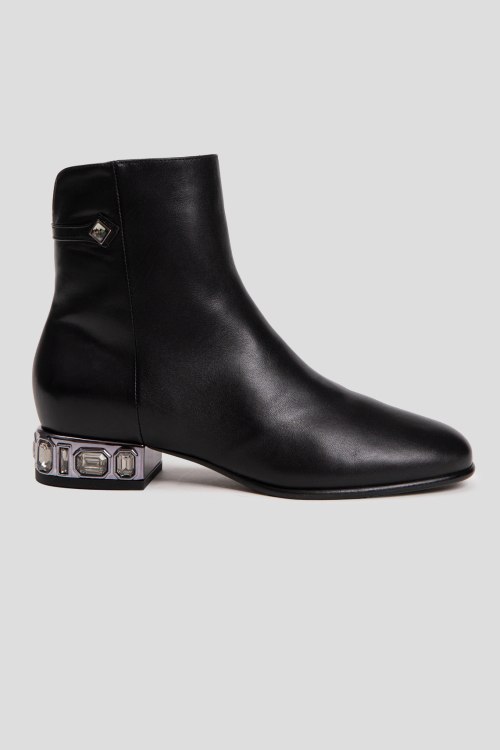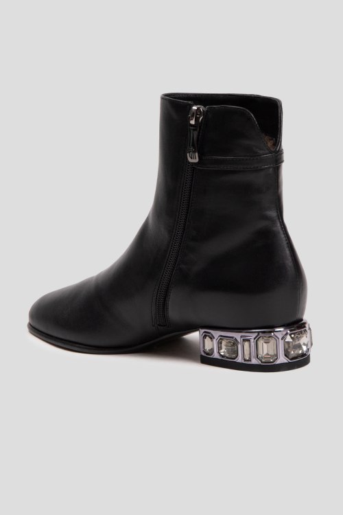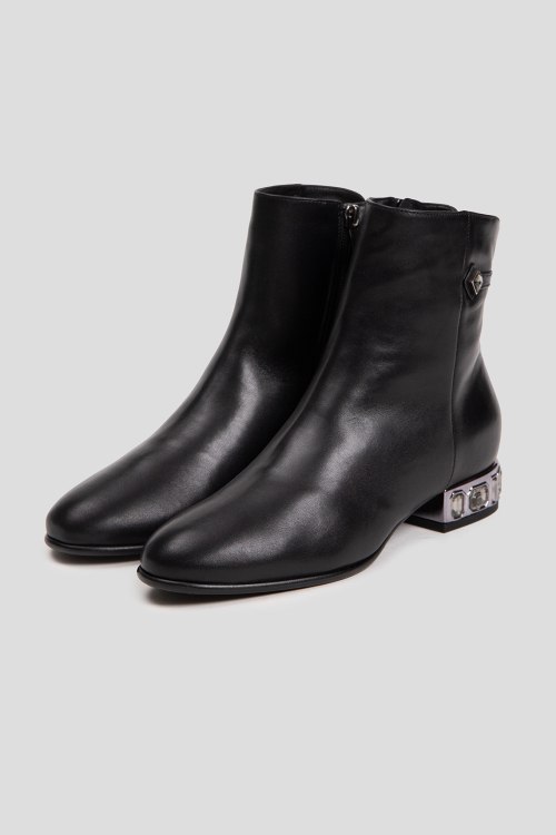 Детали: Женские черные кожаные ботильоны на меху от Giovanni Fabiani (Джованни Фабиани). Модель из гладкой кожи, застежка-молния сбоку, декорированный каблук, закругленный носок, внутри на меху. Высота каблука: 3 см, высота голенища: 14 см. Замеры указаны для: 37 размера