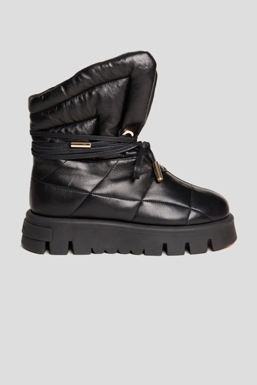 Женские черные ботинки из натуральной кожи от Helena Soretti (Хелена Соретти). Закругленный носок, стеганый дизайн, спереди шнуровка, массивная подошва, модель утепленная мехом