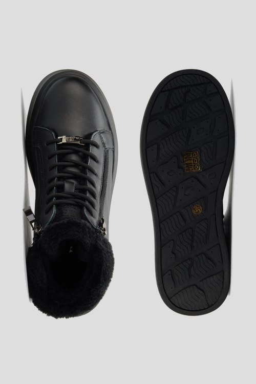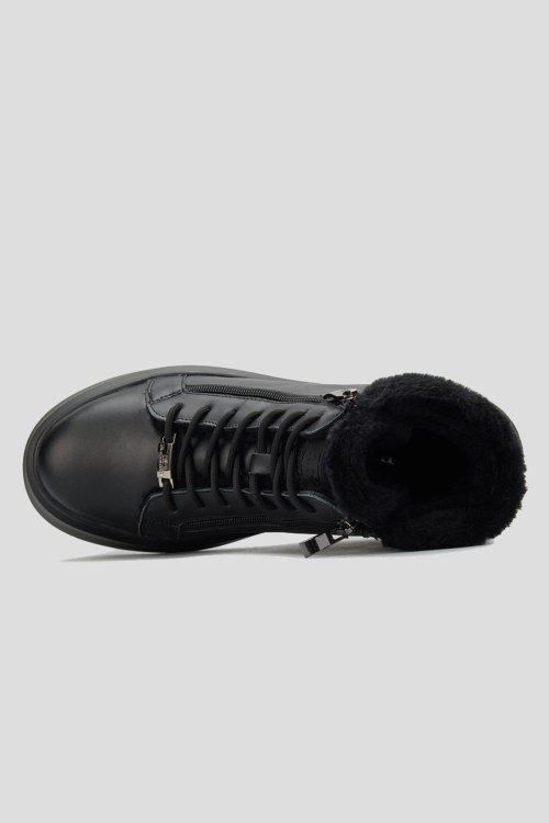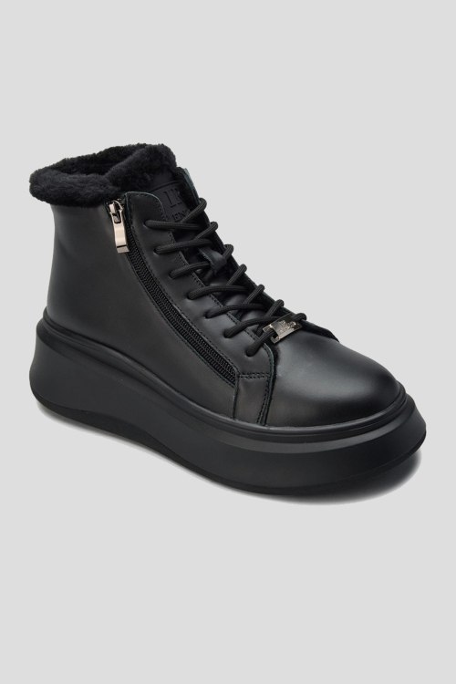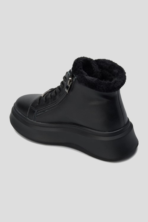 Детали: Женские черные кожаные ботинки на меху от Ilasio Renzoni (Иласио Рензони). Модель из гладкой кожи, классическая шнуровка, две застежки-молнии по бокам, закругленный носок, внутри на меху. Подошва: 5 см, высота голенища: 9 см