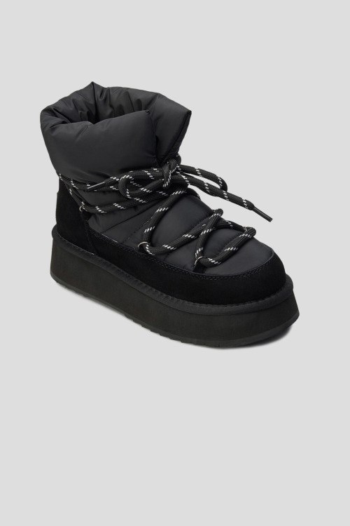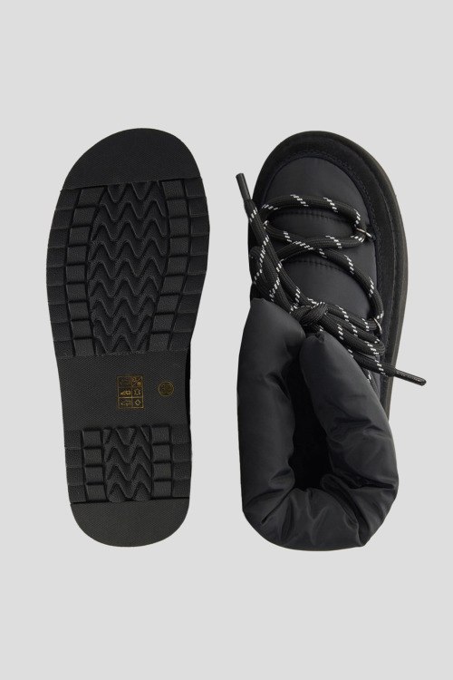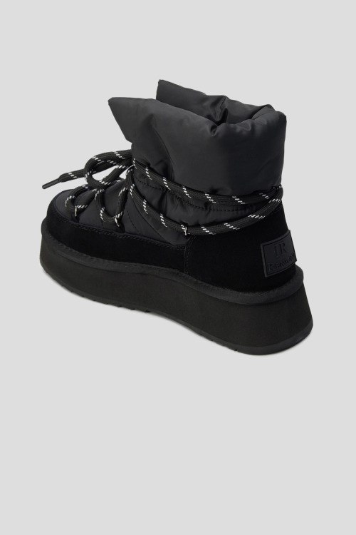 Детали: Женские черные ботинки на меху из замши и текстиля от Ilasio Renzoni (Иласио Рензони). Комбинация материалов, завязки вокруг ноги, закругленный носок, внутри на меху. Подошва: 4.5 см, высота голенища: 13 см. Замеры указаны для: 39 размера