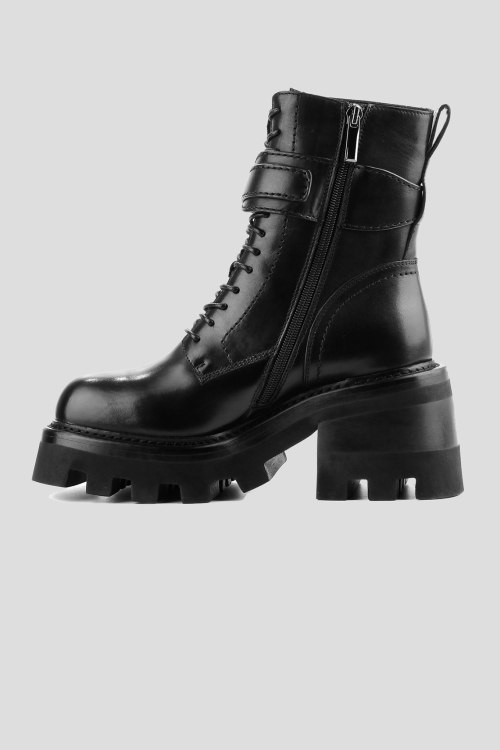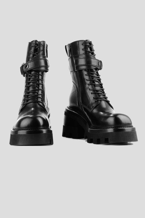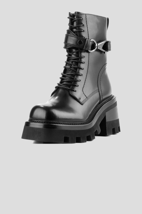 Детали: Женские черные ботинки из натуральной кожи от Le Berdes (Ле Бердес). Закругленный носок, спереди шнуровка, сбоку застегивается на молнию, декорированы ремешком с серебристым карабином, утеплены мехом, тракторная подошва. Измерения: высота каблука: 8 см, высота платформы: 4 см