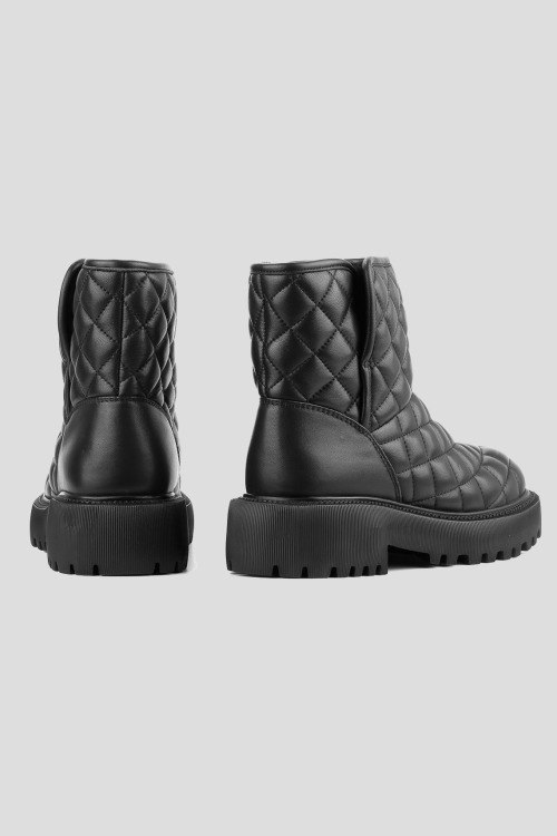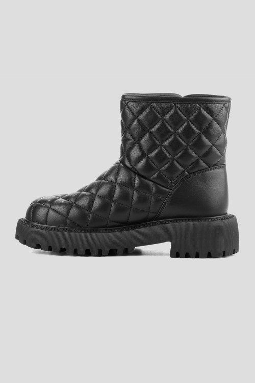 Женские черные ботинки из натуральной кожи от Le Berdes (Ле Бердес). Стеганый дизайн, закругленный носок, тракторная подошва. Измерения: высота каблука 4 см