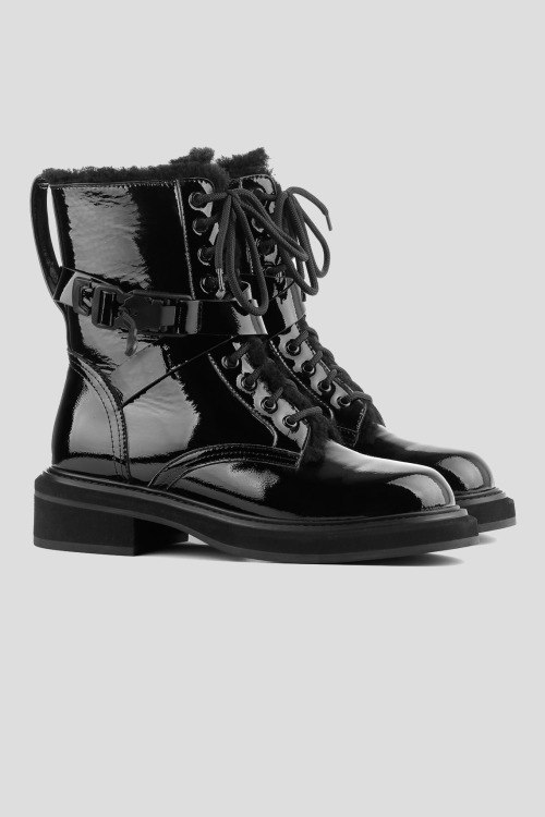 Детали: Женские черные ботинки из лакированной кожи от Le Berdes (Ле Бердес). Закругленный носок, спереди классическая шнуровка, блочный каблук, утепленные мехом. Измерения: длина стельки 23 см (35)