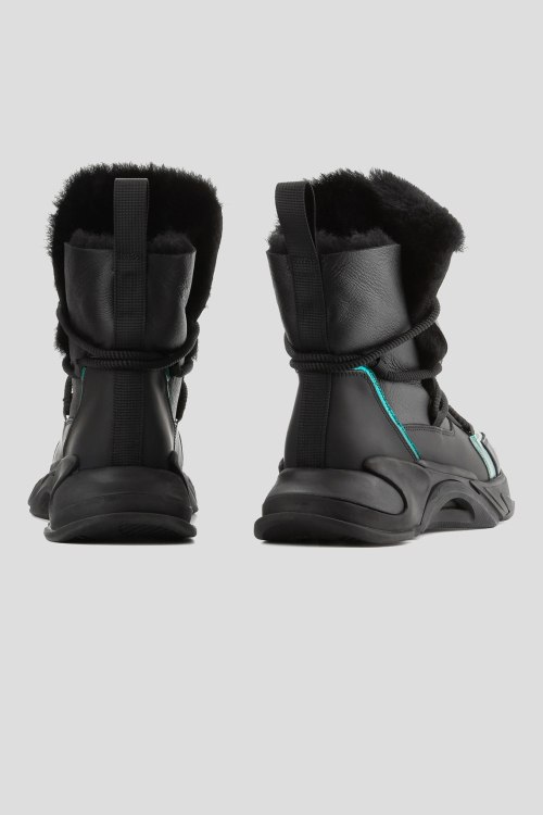 Детали: Женские черные ботинки из натуральной кожи от Le Berdes (Ле Бердес). Комбинированный дизайн, петля для подтягивания, массивная подошва, модель со шнуровкой, утепленная мехом. Измерения: высота платформы: 4 см длина стельки: размер 35 (23 см), 36 (23,5 см), 37 (24 см), 38 (24,5 см), 39 (25 см), 40 (25,5 см), 41 (26 см)