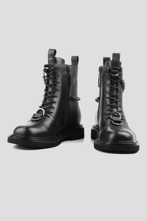 Детали: Женские черные ботинки из натуральной кожи от Le Berdes (Ле Бердес). Закругленный носок, спереди классическая шнуровка, сбоку застежка на молнию, петли для подтягивания, утепленные мехом