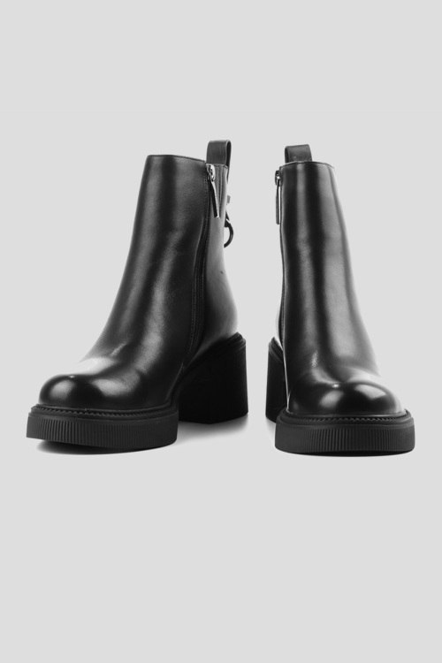 Детали: Женские черные ботинки из натуральной кожи от Le Berdes (Ле Бердес). Застежка-молния сбоку, петля для подтягивания с металлической фурнитурой, закругленный носок, широкий каблук, внутри на натуральном меху. Высота каблука - 7 см