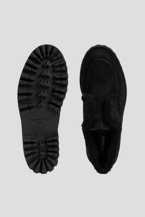 Детали: Женские черные замшевые лоферы на меху Yacht от Le Silla (Ле Силла). Без застежки, меховая отделка, закругленный носок, внутри на меху. Подошва: 2.5 см