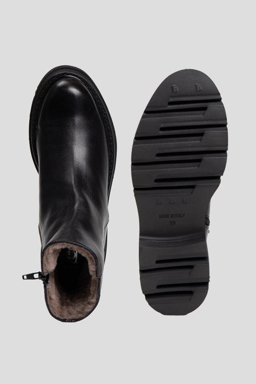 Детали: Женские черные кожаные ботинки на меху от Luca Grossi (Лука Гросси). Модель из гладкой кожи, застежка-молния сбоку, миндалевидный носок. Высота каблука: 4 см, платформа: 2.5 см, высота голенища: 13 см