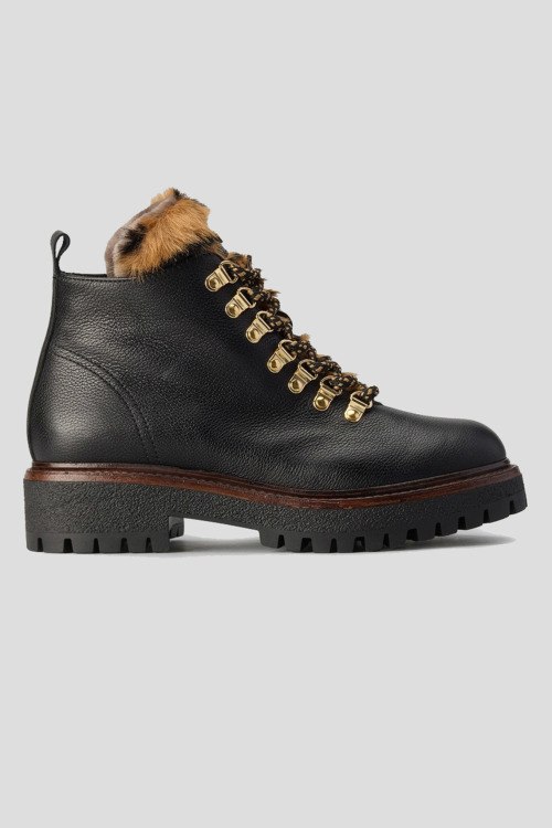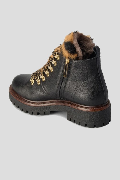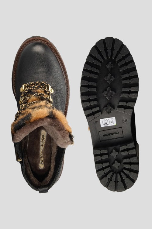 Детали: Женские черные кожаные ботинки на меху от Marino Fabiani (Марино Фабиани). Модель из зернистой еожи, меховая отделка, классическая шнуровка, застежка-молния сбоку, закругленный носок, тракторная подошва, внутри на меху. Высота каблука: 5 см, подошва: 3.5 см, высота голенища: 10 см