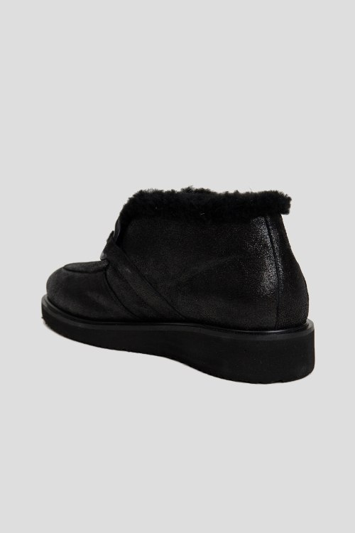 Женские черные ботинки из натуральной кожи с напылением от Marzetti (Марзетти). Миндалевидный носок, спереди шнуровка, рельефная подошва, утепленные мехом
