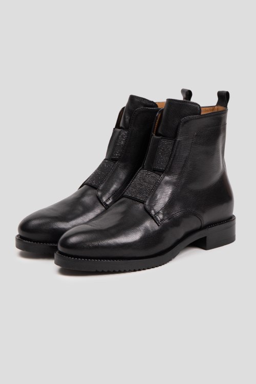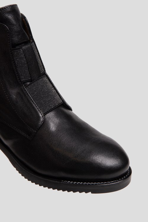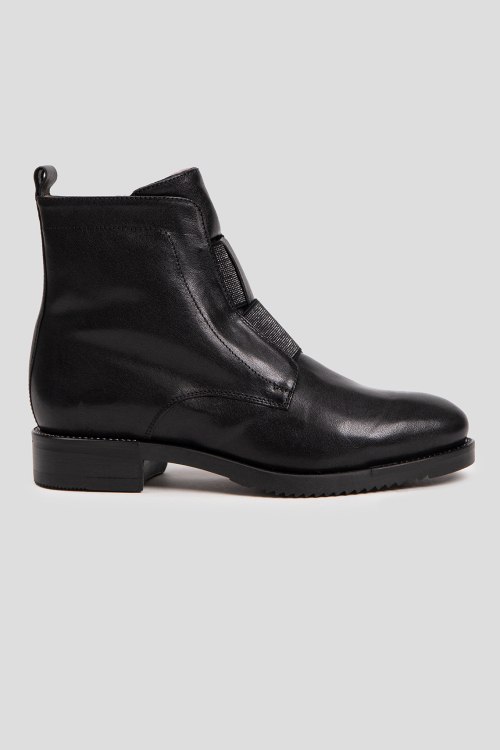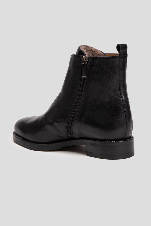 Детали: Женские черные кожаные ботинки на меху от Mot-Cle (Мот-Кле). Модель из гладкой кожи, застежка-молния сбоку, петля для подтягивания сзади, миндалевидный носок, внутри на меху. Высота каблука: 3 см, высота подошвы: 1.5 см