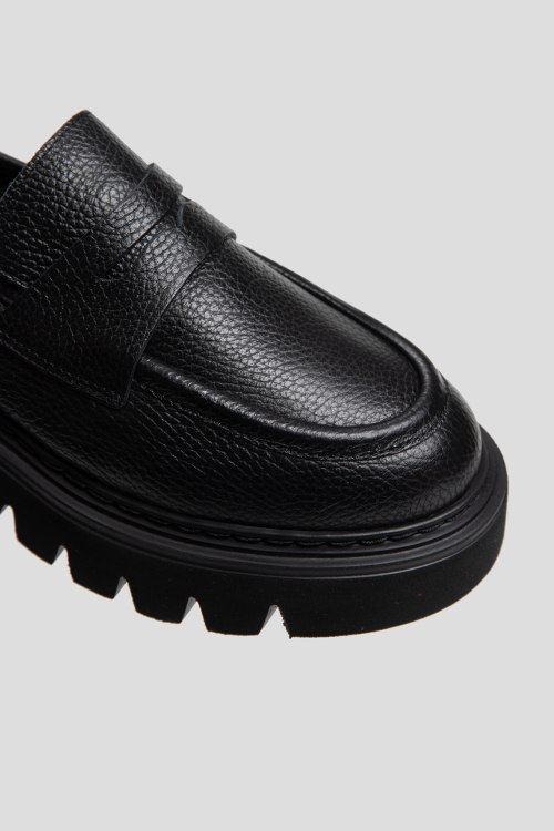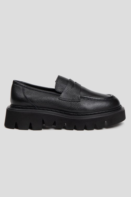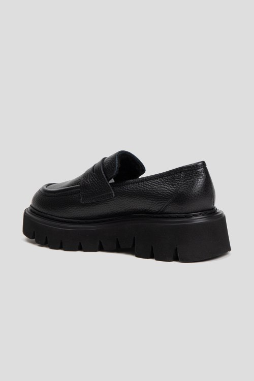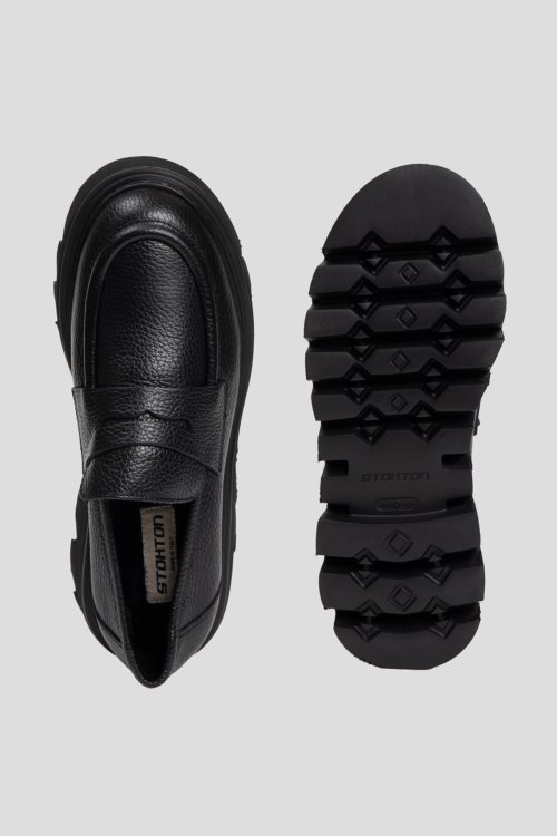 Детали: Женские черные кожаные лоферы на меху от Stokton (Стоктон). Модель из зернистой кожи, закругленный носок, внутри на меху. Высота каблука: 5.5 см, платформа: 4 см