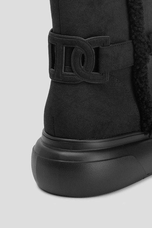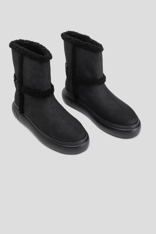 Детали: Женские черные ботинки из полиэстера от TWINSET (Твинсет). Закругленный носок, брендированная нашивка на заднике, модель утепленная овчиной, толстая подошва в тон изделия