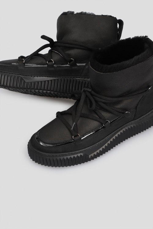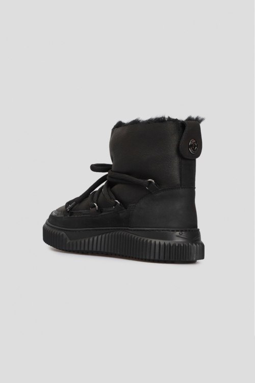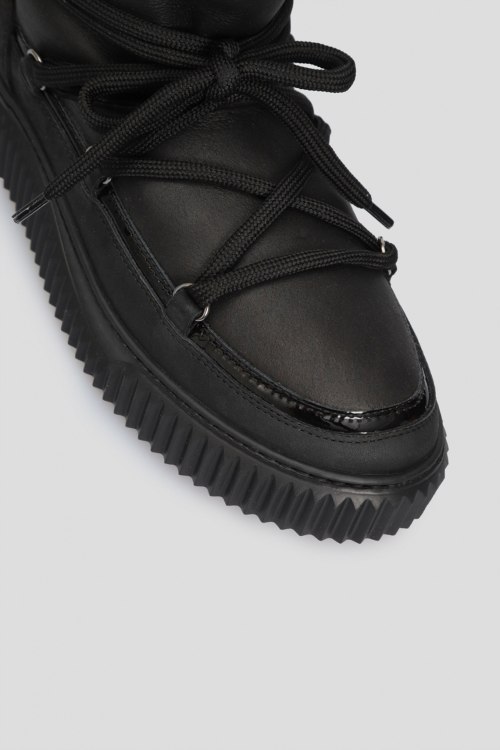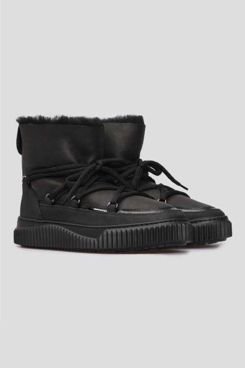 Женские черные сапоги из натуральной кожи от Voile Blanche (Вуаль Бланш). Закругленный носок, спереди шнуровка, резиновая подошва черного цвета, модель утепленная мехом