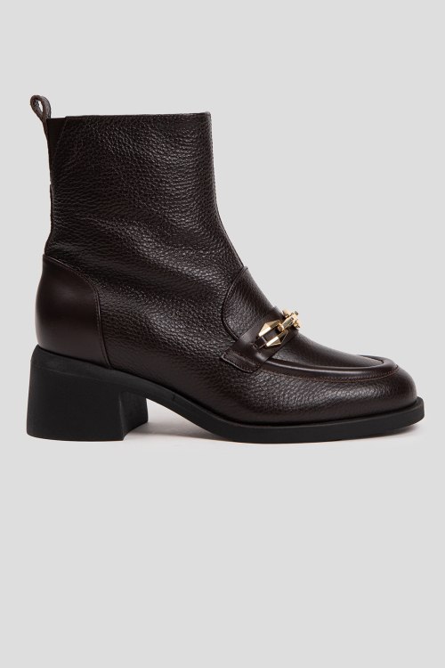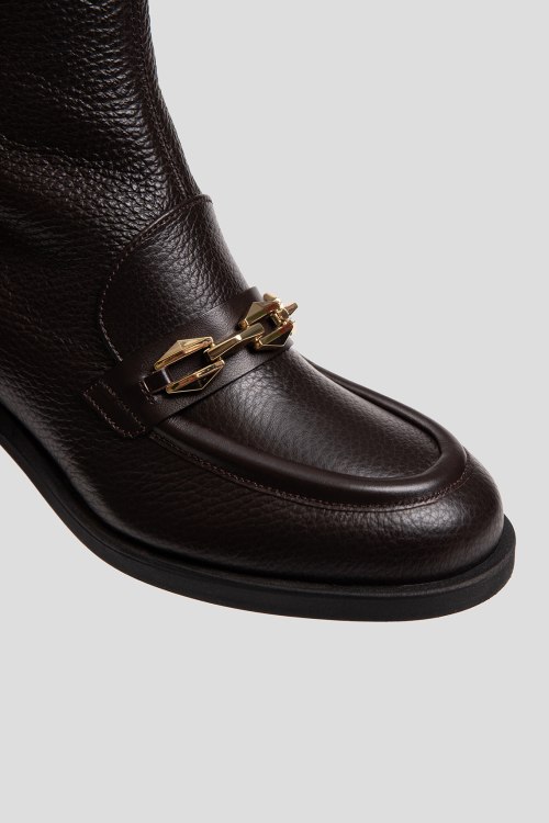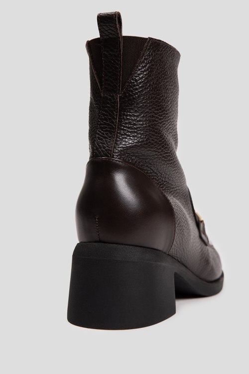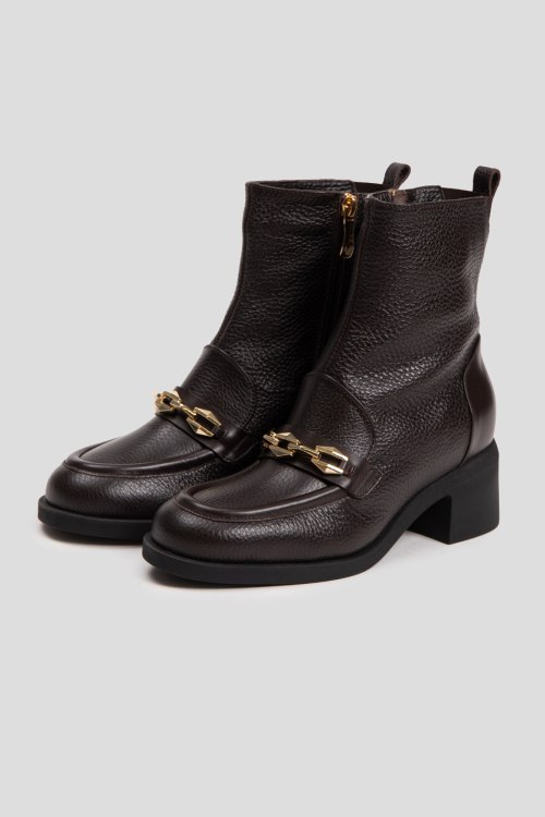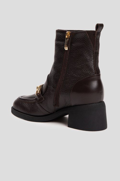 Детали: Женские темно-коричневые кожаные ботильоны на меху от Giovanni Fabiani (Джованни Фабиани). Модель из зернистой кожи, золотистая фурнитура, застежка-молния сбоку, закругленный носок, внутри на меху. Высота каблука: 6 см, подошва: 1.5 см, высота голенища: 14 см. Замеры указаны для: 37 размера