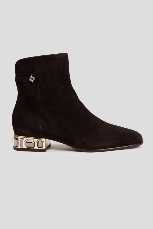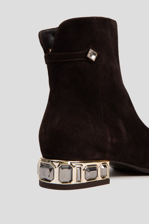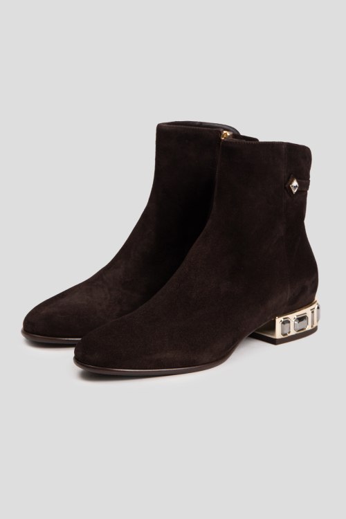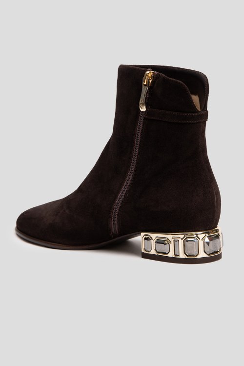 Детали: Женские темно-коричневые замшевые ботильоны на меху от Giovanni Fabiani (Джованни Фабиани). Застежка-молния сбоку, декорированный каблук, закругленный носок, внутри на меху. Высота каблука: 3 см, высота голенища: 14 см. Замеры указаны для: 37 размера