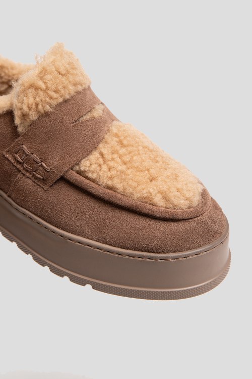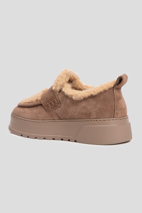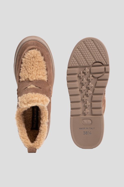 Детали: Женские замшевые лоферы на меху цвета кэмел от Laura Bellariva (Лаура Белларива). Меховая отделка, петля для подтягивания сзади, закругленный носок, внутри на меху. Подошва: 4.5 см