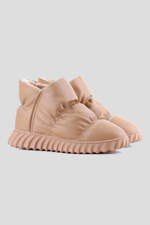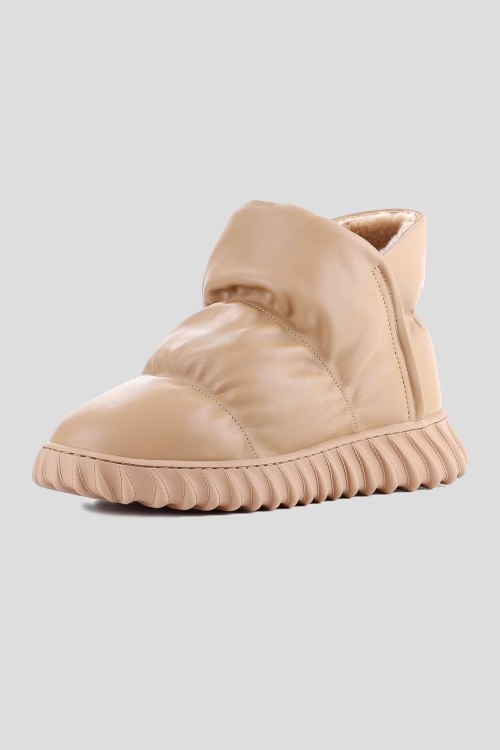 Женские коричневые ботинки из натуральной кожи от Le Berdes (Ле Бердес). Закругленный носок, стеганный "дутый" дизайн, модель без застежки, рельефная подошва, утепленная модель мехом. Измерения: длина стельки: 23.5 см (36)