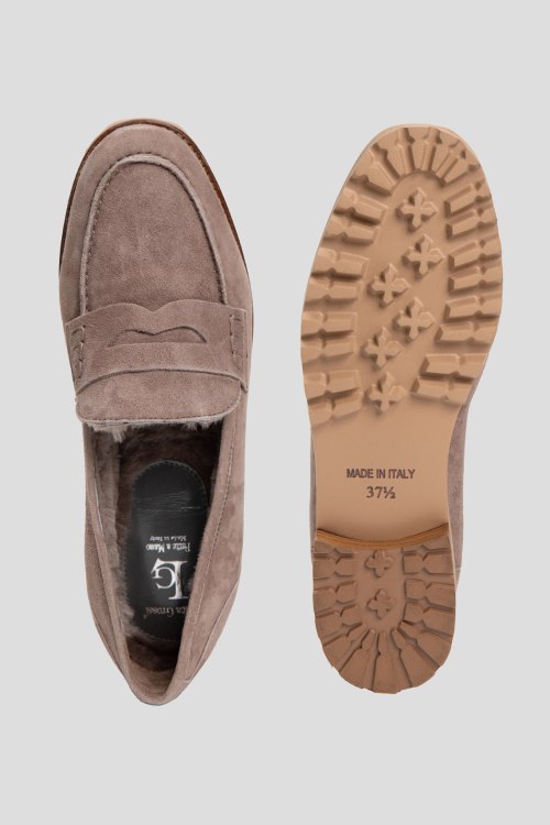 Детали: Женские светло-коричневые замшевые лоферы на меху от Luca Grossi (Лука Гросси). Тональная строчка, закругленный носок, внутри на меху. Высота каблука: 3 см
