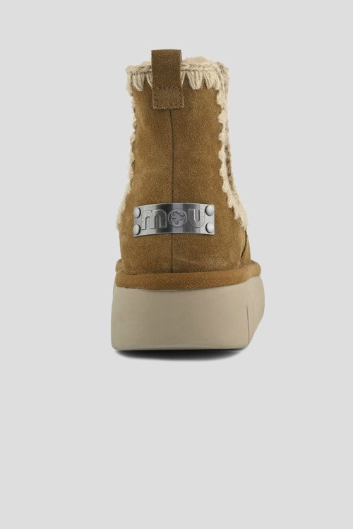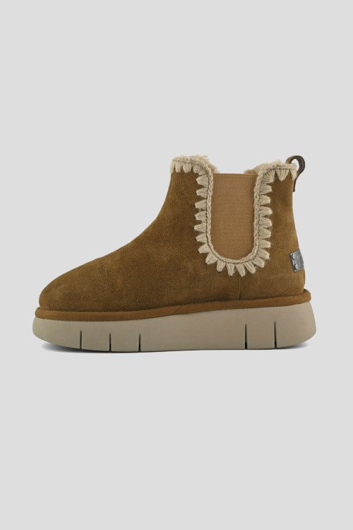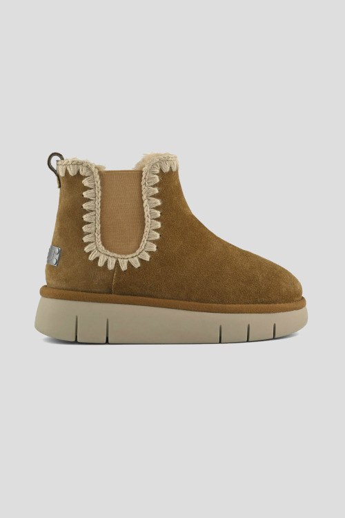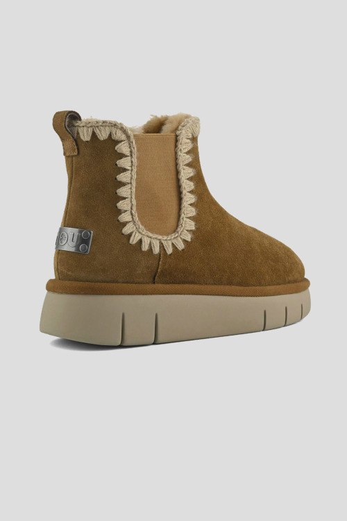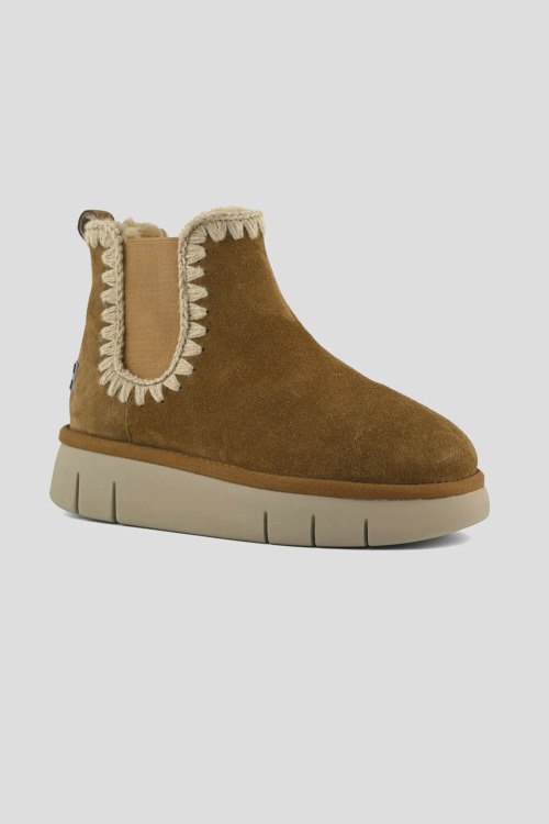 Детали: Женские замшевые челси цвета кэмел на меху от Mou (Моу). Эластичные вставки по бокам, логотип на пятке, петля для подтягивания сзади, закругленный носок, внутри на меху