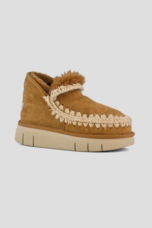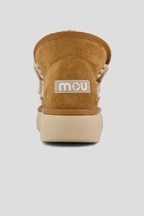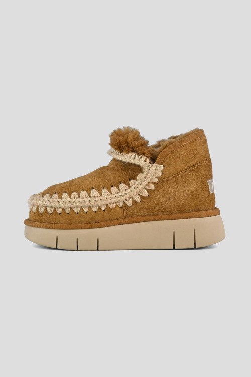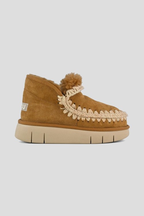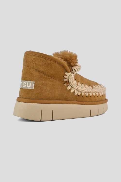 Детали: Женские замшевые ботинки цвета кэмел на меху Eskimo от Mou (Моу). Модель без застежки, ручная вышивка, нашивка с логотипом на пятке, закругленный носок, внутри на меху