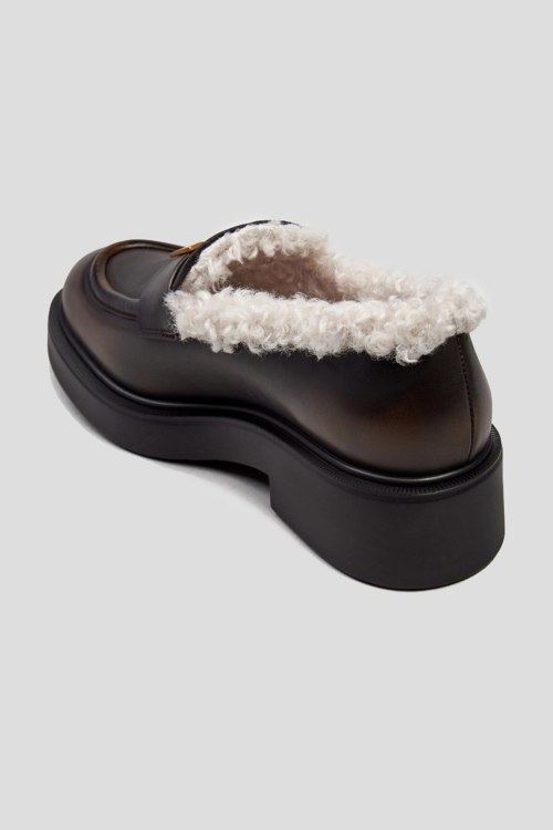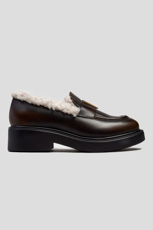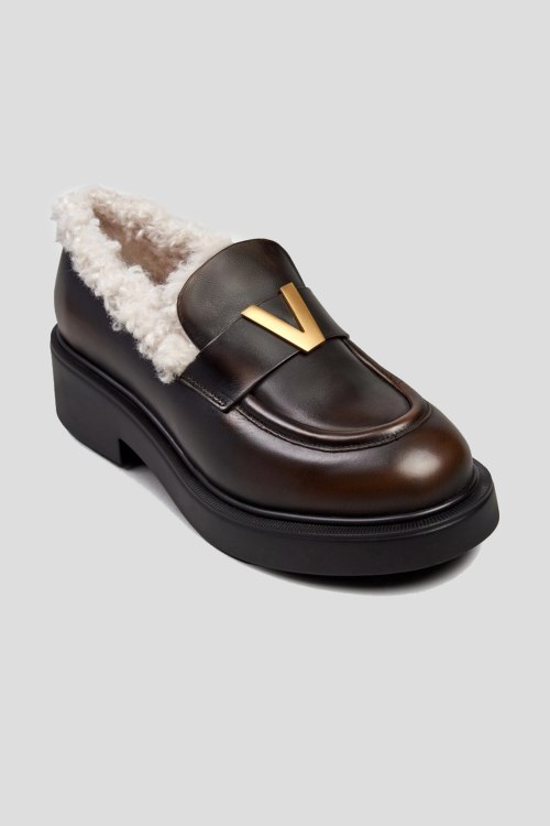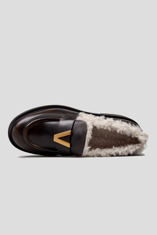 Детали: Женские темно-коричневые кожаные лоферы на меху от Vittorio Virgili (Витторио Вирджили). Модель из гладкой кожи, металлический значок с логотипом, закругленный носок, внутри на меху. Высота каблука: 5 см, высота платформы: 3 см