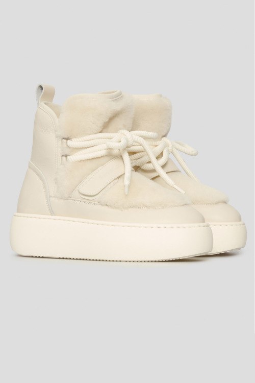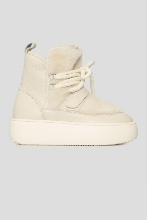 Детали: Женские кремовые кожаные ботинки на меху от Barracuda (Барракуда). Меховая отделка, застежка на липучку и шнуровку, петля для подтягивания сзади, закругленный носок, внутри на меху. Высота подошвы: 5 см