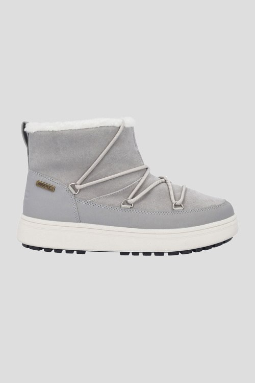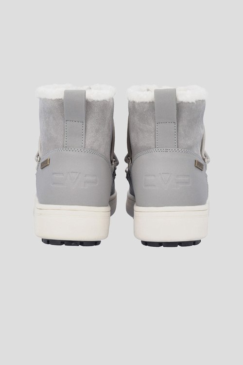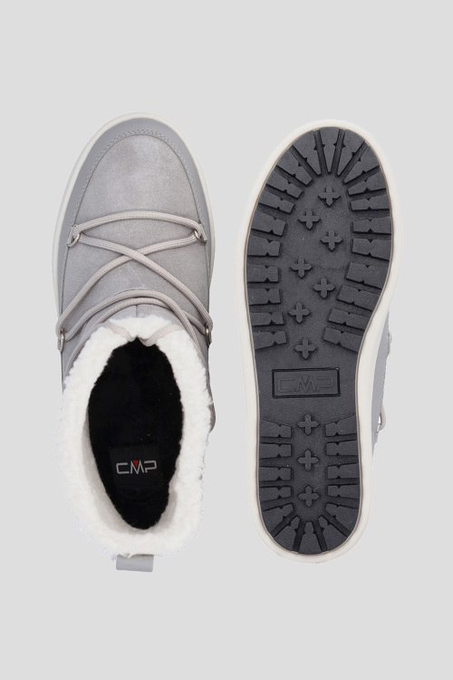 Детали: Женские серые ботинки Kayla Wmn Snow Boots Wp из натуральной кожи и замши от CMP (СМП). Закругленный носок, комбинация материалов, спереди шнуровка с металлическими петлями, утепленные мехом, тиснение с логотипом бренда, высокая подошва из резины