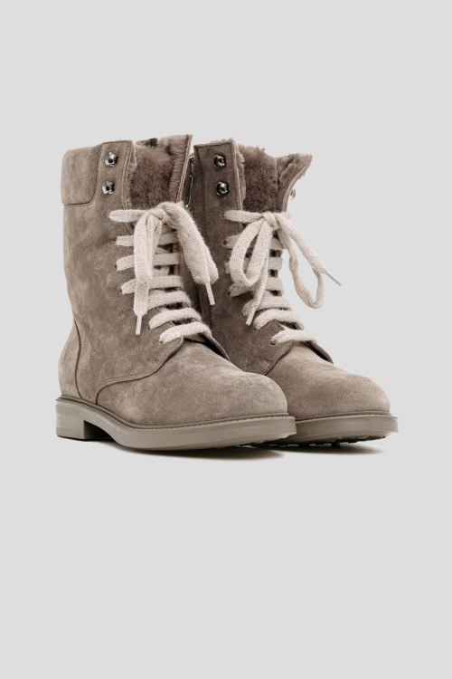 Детали: Женские серые замшевые ботинки на меху от Doucal's (Дукалс). Классическая шнуровка, застежка-молния сбоку, закругленный носок, внутри утеплитель