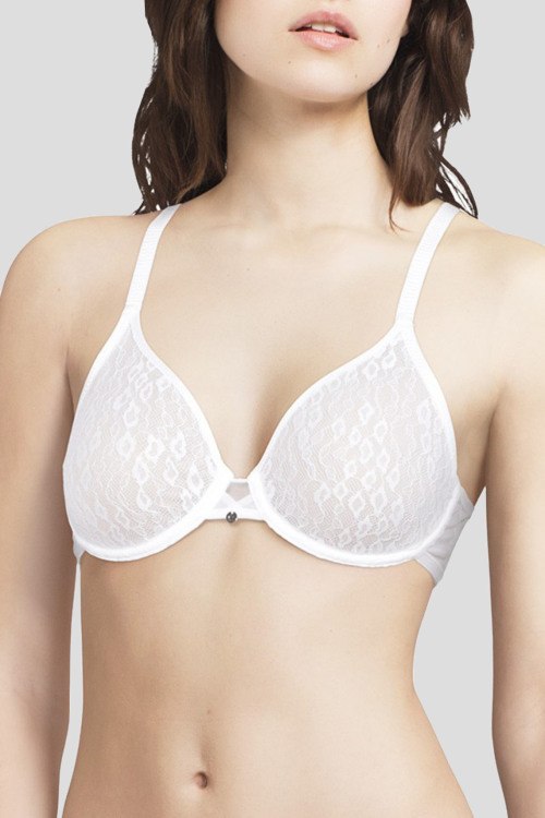 Детали: Женский белый бюстгальтер из полиамида и эластана от Chantelle (Шантель). Кружевная модель, застежка на спинке на крючок, тонкие регулируемые бретели, мягкая чашечка