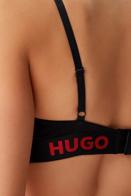 Детали: Женский черный хлопковый бюстгальтер от Hugo by Hugo Boss (Хуго бай Хуго Босс). Уплотненная чашка, тонкие бретели, эластичная резинка с логотипом