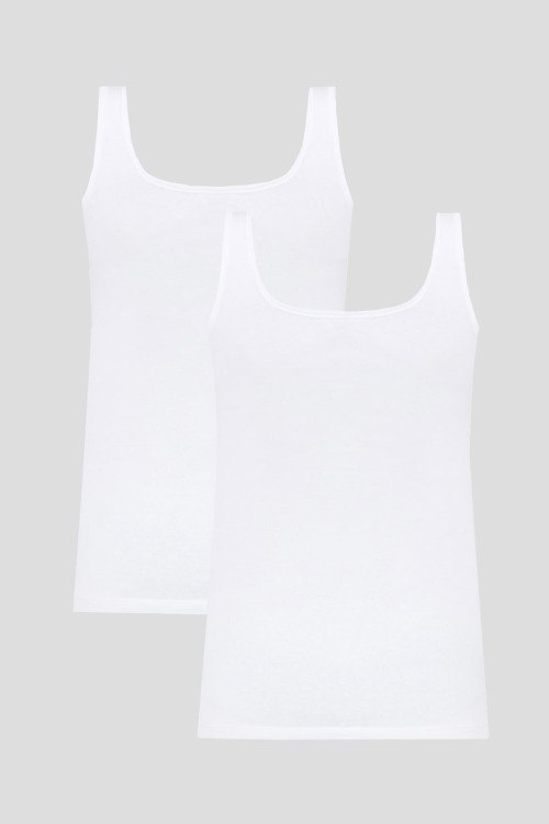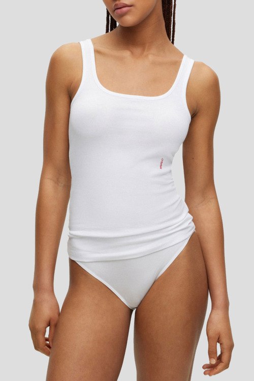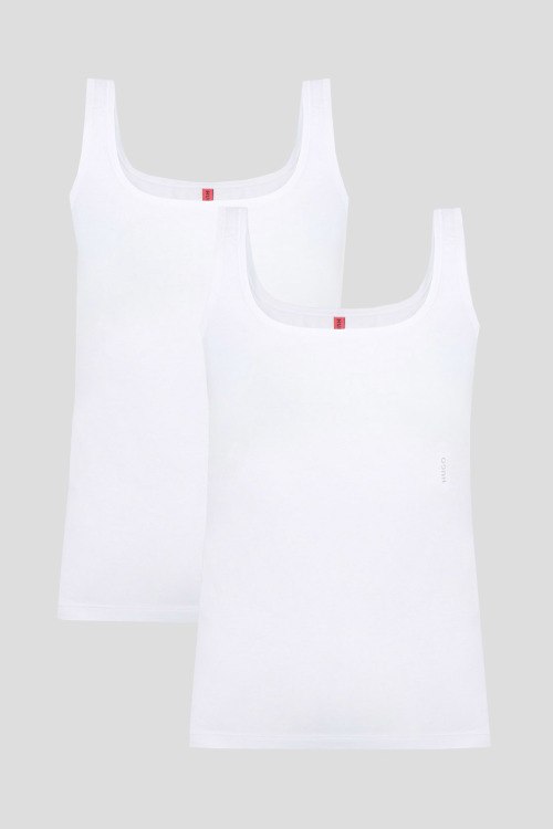 Детали: Женский комплект белых хлопковых маек Twin Vest от Hugo Boss (Хуго Босс). Принт с логотипом, круглый вырез, облегающий фасон, классическая длина. В комплекте 2 шт