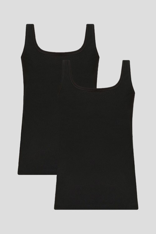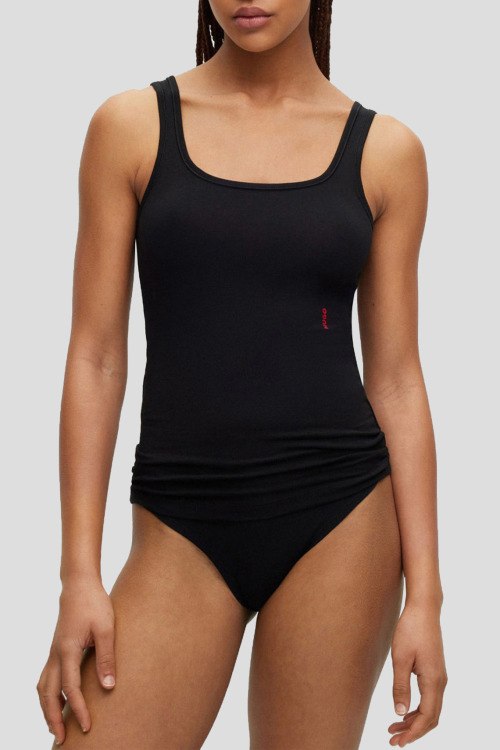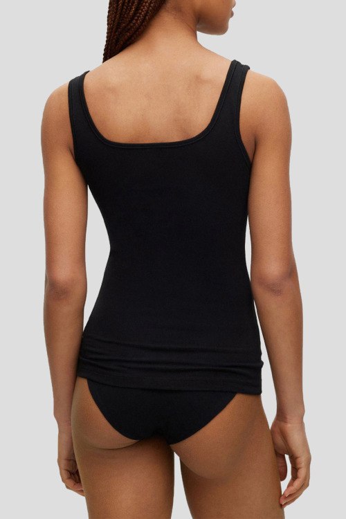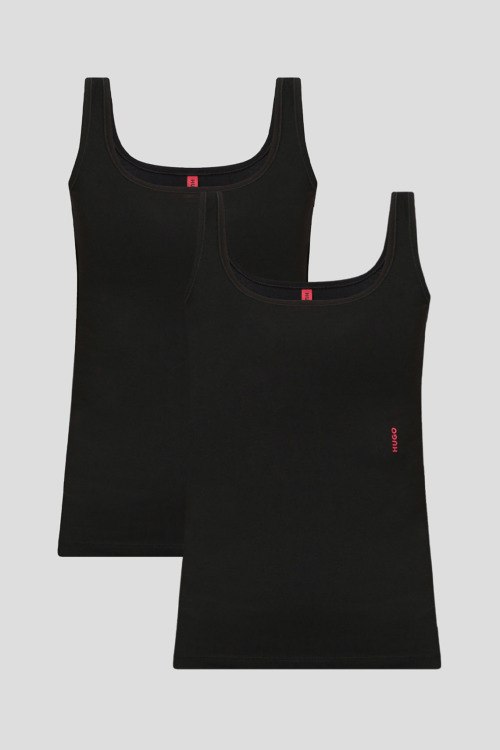 Детали: Женский комплект черных хлопковых маек Twin Vest от Hugo Boss (Хуго Босс). Принт с логотипом, круглый вырез, облегающий фасон, классическая длина. В комплекте 2 шт