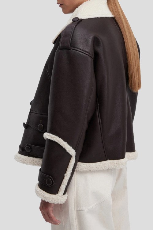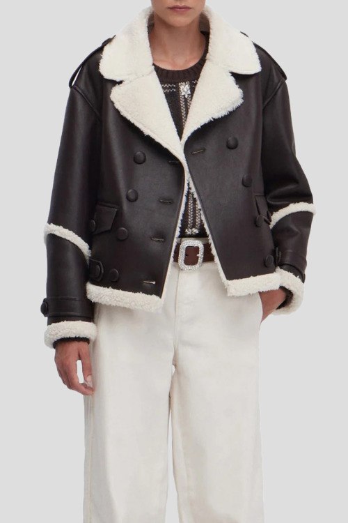 Детали: Женская темно-коричневая дубленка из экокожи от Ermanno Ermanno Scervino (Эрманно Эрманно Шервино). Модель из гладкой кожи, двубортный фасон, отложной меховой воротник, передние карманы, застежка на пуговицы, подкладка из экомеха, короткая длина