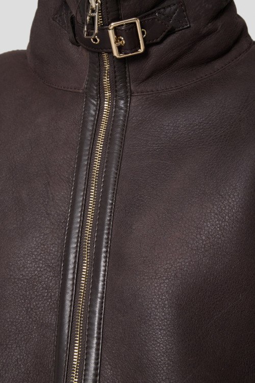 Детали: Женская темно-коричневая кожаная дубленка от Joop! (Йооп!). Модель из зернистой кожи, высокий меховой воротник с застежкой на пряжку, боковые карманы, застежка-молния, внутри на меху. Длина рукава: длинный, для размера 38 - 62 см, обхват груди: для размера 38 - 110 см, обхват талии: для размера 38 - 106 см, длина изделия по среднему шву спинки от горловины: для размера 38 - 60 см