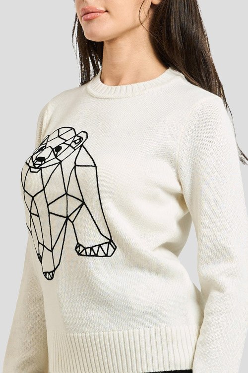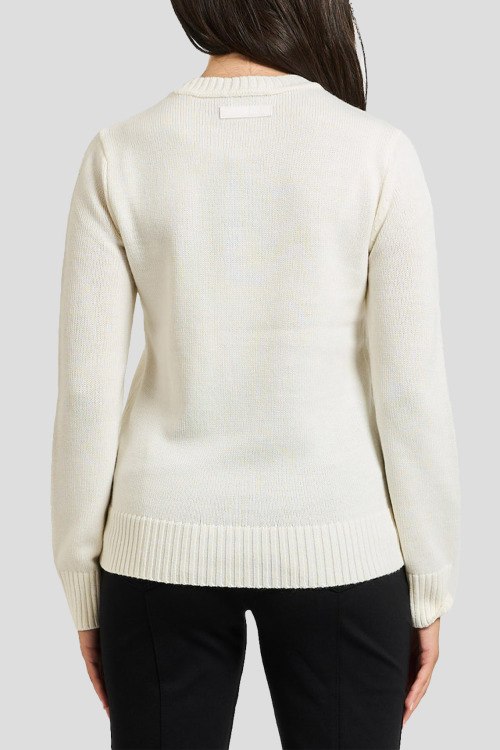 Детали: Женский белый джемпер из шерсти и акрила от EA7 Emporio Armani (ЕА7 Эмпорио Армани). Вышивка на груди, круглый вырез горловины, классическая длина, ребристые манжеты и нижний край
