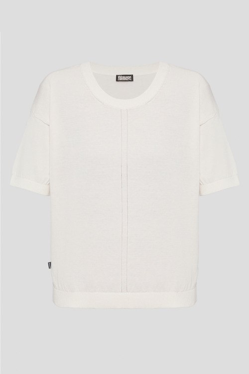 Детали: Женский белый хлопковый джемпер от Blauer (Блауэр). Круглый вырез горловины, короткий рукав, классическая длина. Длина рукава: короткий, для размера S - 18 см, обхват груди: для размера S - 108 см, обхват талии: для размера S - 98 см, длина изделия по среднему шву спинки от горловины: для размера S - 57 см