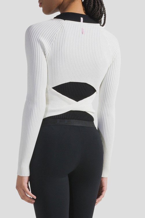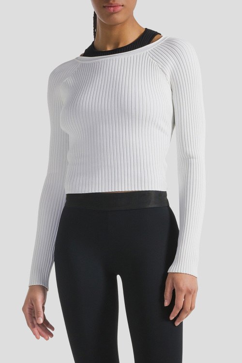 Детали: Женский белый трикотажный джемпер от Deha (Деха). Дизайн в рубчик, круглый вырез горловины, вырез на спине, слегка укороченная длина. Длина рукава: длинный, для размера S - 66 см, обхват груди: для размера S - 80 см, обхват талии: для размера S - 66 см, длина изделия по среднему шву спинки от горловины: для размера S - 38 см