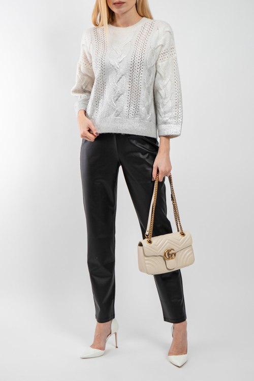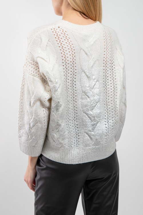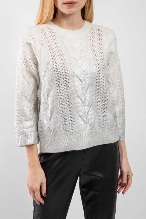 Женский белый джемпер из шерстяного микса от Peserico (Пезерико). Классическая длина, круглый вырез горловины, укороченные рукава, дизайн с перфорацией.