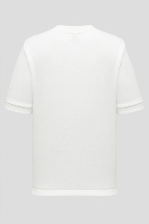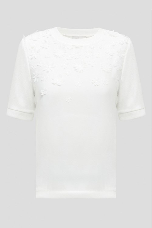 Детали: Женский белый джемпер из полиэстера и вискозы от Rich & Royal (Рич энд Роял). Классическая длина, круглый вырез горловины, короткие рукава, модель декорирована цветочной аппликацией спереди. Замеры: длина рукава: короткий, для размера S - 23 см, обхват груди: для размера S - 96 см, обхват талии: для размера S - 88 см, длина изделия по среднему шву спинки от горловины: для размера S - 54 см
