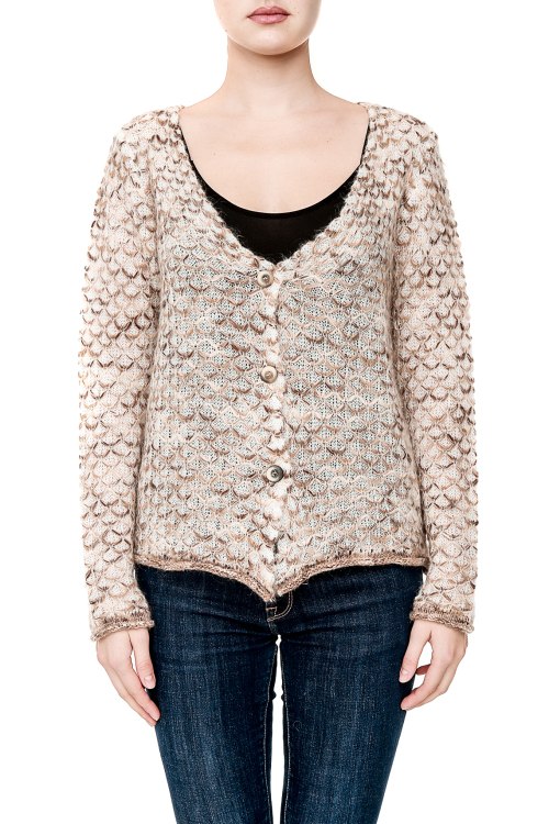 Детали: Вязаная комбинированная кофта на пуговицах, свободный крой