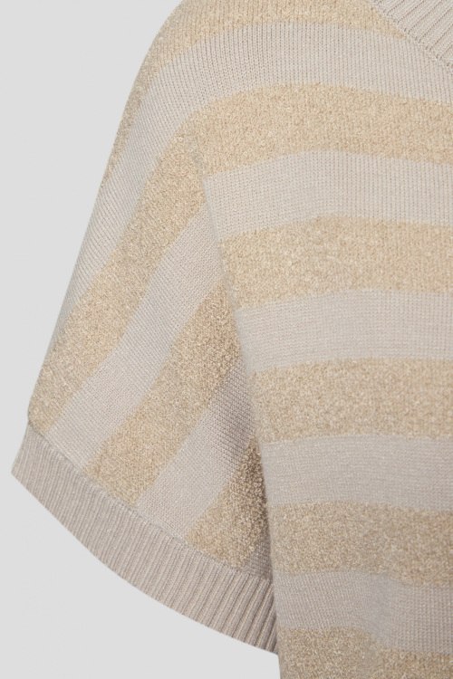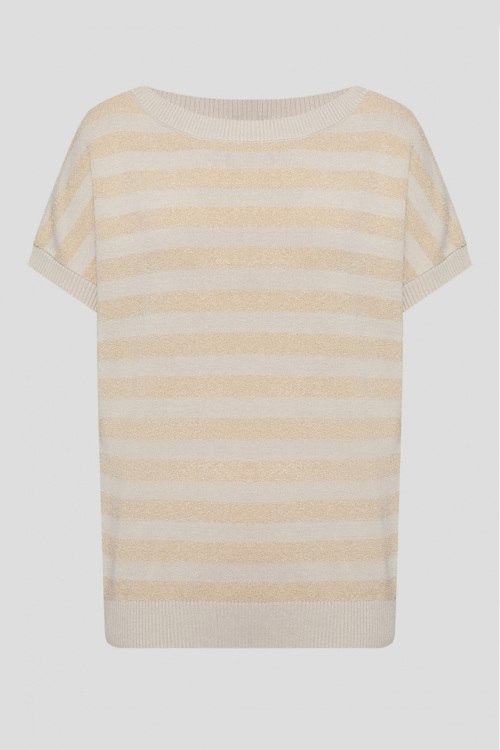 Детали: Женский бежевый трикотажный джемпер от Joop! (Йооп!). Полоска по всей поверхности, круглый вырез горловины, короткий рукав, классическая длина. Длина рукава: короткий, для размера 36 - 20 см, обхват груди: для размера 36 - 106 см, обхват талии: для размера 36 - 96 см, длина изделия по среднему шву спинки от горловины: для размера 36 - 54 см