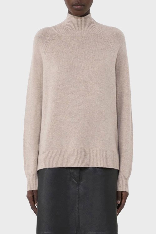 Детали: Женский бледно-бежевый кашемировый джемпер Alcali от Max Mara Weekend (Макс Мара Викенд). Высокая горловина, длинный рукав, классическая длина, манжеты и нижний край в рубчик