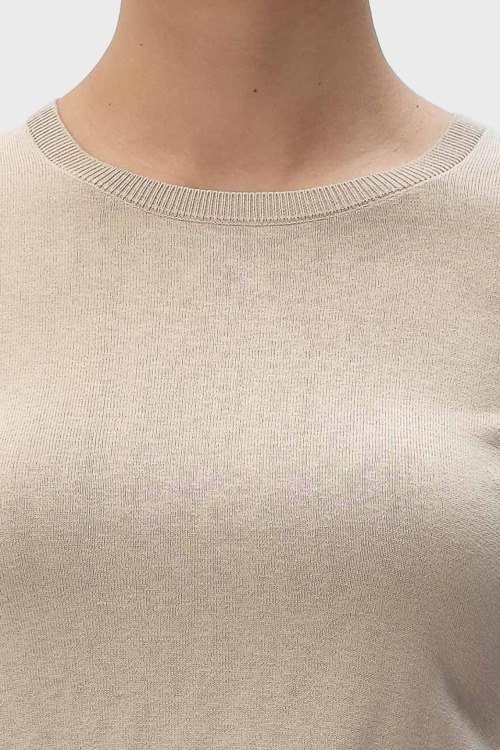 Детали: Женский бежевый джемпер из шелка и хлопка Agro от Max Mara Weekend (Макс Мара Викенд). Круглый вырез горловины, короткий рукав, классическая длина